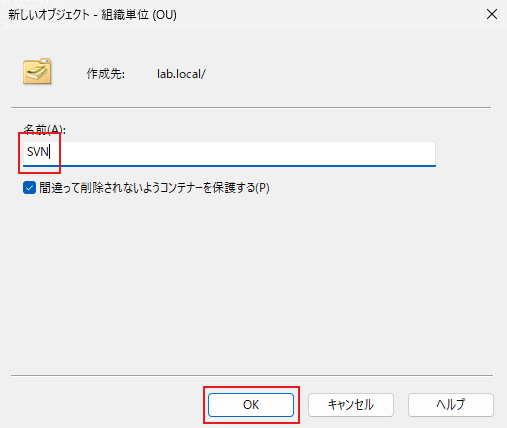 OU(組織単位)の「SVN」を作成する