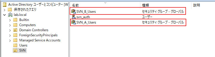 同じ要領で、「SVN_B_Users」グループも作成しました。