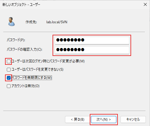 今回の構築手順では、作業をスムーズに進めるためにすべてのユーザーを「パスワード無期限」として解説します。