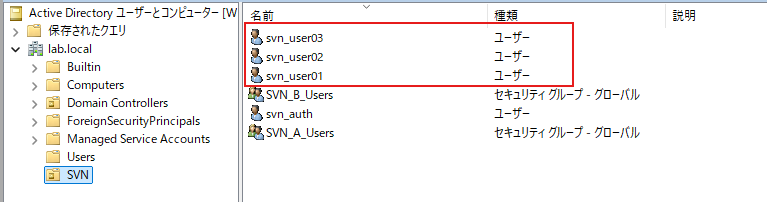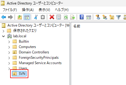 以下のようにOU(組織単位)の「SVN」ができているとわかります。