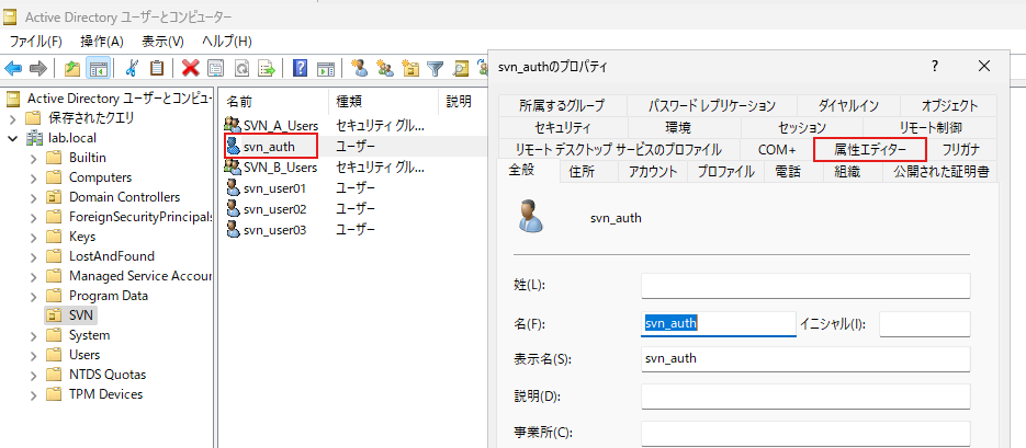 svn_auth を右クリック > プロパティ > 「属性エディター」タブを開きます。