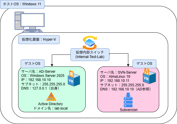 Hyper-Vによる「OS標準」の仮想化活用 Windows 10/11に内蔵されているHyper-Vを利用することで、追加ソフトなしで安定した検証環境を構築します。Windows Server 2025とAlmaLinux 10という最新OSの組み合わせにも対応したスペック設定を行います。