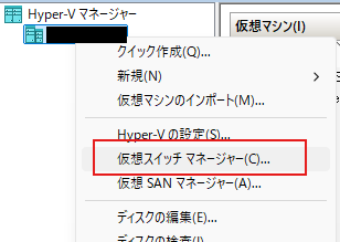 Hyper-Vマネージャーのサーバ上で右クリックし、仮想スイッチマネージャーを開きます。